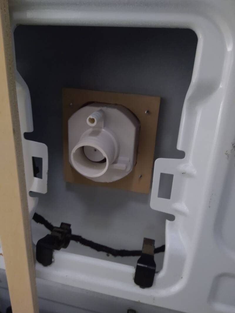 Voordat we de wandpanelen kunnen plaatsen, moest er eerst nog de walaansluiting voor het schone water geplaatst worden. Waren we dat toch bijna vergeten... Het was steeds te koud om te kitten, dus bleef dit taakje op de to do lijst staan. Maar Ronald nam de decoupeerzaag weer ter hand en binnen een uurtje was daar een keurig geplaatste walaansluiting voor het water!
