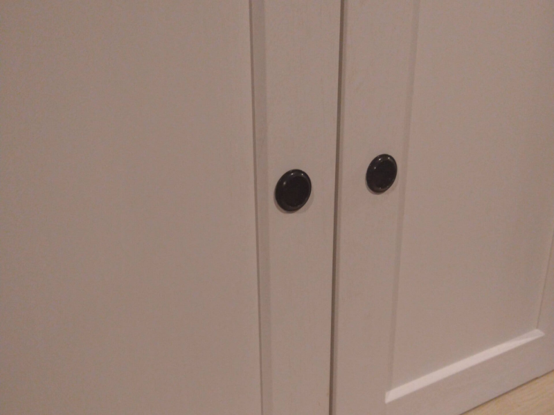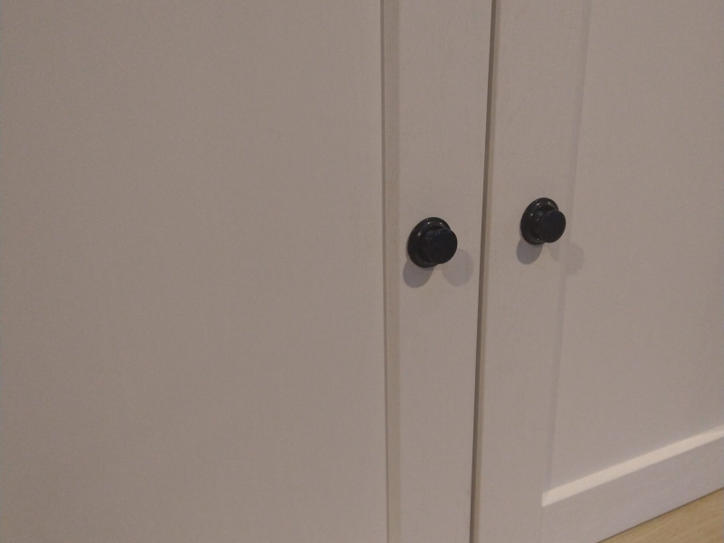 Gelukkig hadden we deze week in de avonduurtjes toch ook wel weer wat werk verzet. Zo hebben de kastdeurtjes allemaal knopjes gekregen die tegelijkertijd fungeren als slotjes.