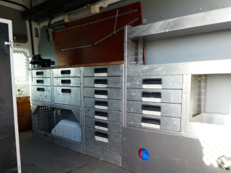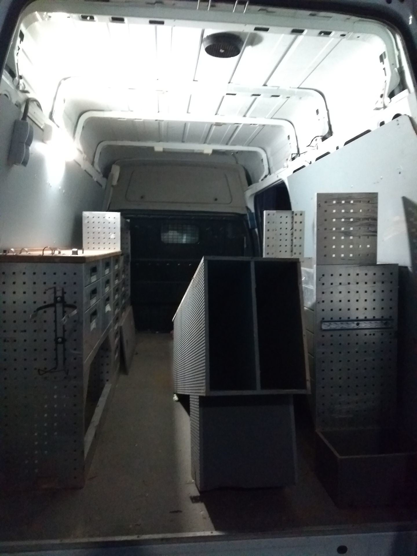 Deze week stond in het teken van het leegmaken van de bus. Alle kasten eruit, elektra demonteren en schoonmaken van de laadruimte. Met als gevolg dat ons schuurtje en tuin gevuld zijn met kasten, wanden en andere "zooi".