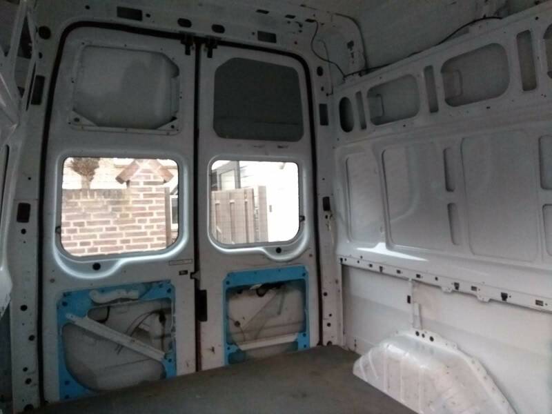 De "tralies" aan de binnenzijde van de ramen zijn natuurlijk niet wenselijk in een camper. Dus heeft Ronald de popnagels uitgeboord. Dat is meteen weer een heel ander gezicht. Oke, de tralies van de schuifdeur moet nog verwijderd worden, maar die van de achterdeuren zijn eraf.