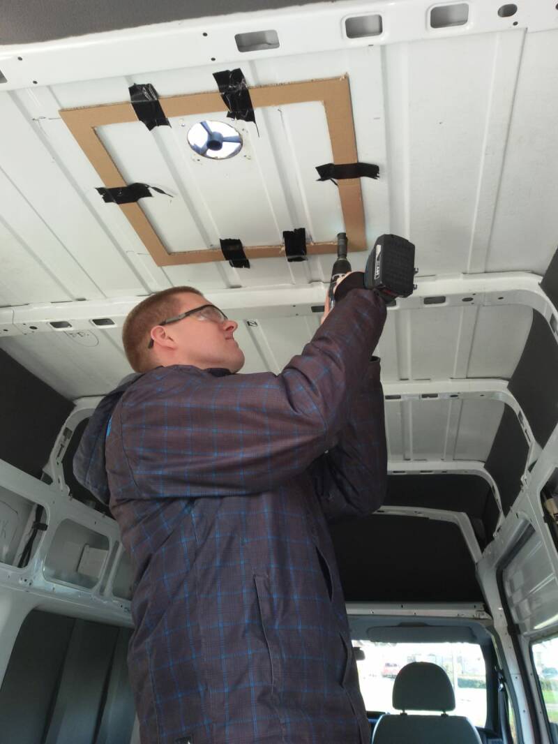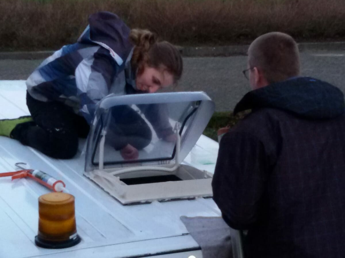 Onze bus heeft al een aantal ramen, naast de ramen in de cabine zitten er ramen in de zijdeur en beide achterdeuren. Toch zouden we graag een dakraam erin hebben. Voor enerzijds extra licht, maar ook voor frisse lucht. Je kunt zo'n raam natuurlijk laten plaatsen, maar dit kost zomaar 200 euro. Dus hebben we onszelf geïnformeerd via verschillende bronnen, onder andere het bijgeleverde boekje, maar we hebben ook vele reviews en filmpjes op internet van andere zelfbouwers bekeken.
