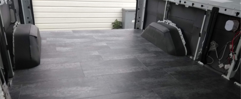 Waarom alles 38 keer? Nou omdat de vloer uit precies 38 stukken bestaat. Gelukkig zitten er ook een aantal hele tussen, wat ervoor zorgde dat het leggen vlotjes ging. Maar er zijn ook heel wat passtukjes gemaakt, aangezien er bijna niks recht is. Totaal was het een middagje en een avond werk in m'n eentje. Ook het rooster in de vloer zit er netjes in en de treeplank zit er weer mooi op. Vanaf nu dus alleen nog maar op de sokken in de bus haha :)