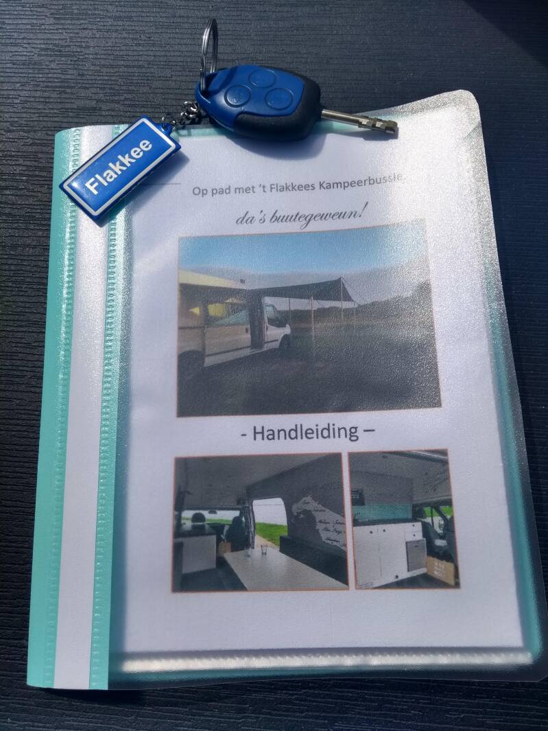 En de plattegrond voor overdag en voor 's nachts: (heerlijk genoeg plaats dus voor 2 personen!) Rechts onze zelf geschreven handleiding waar alles van het campergedeelte in uitgelegd staat. Natuurlijk bijpassende sleutelhanger haha ;)